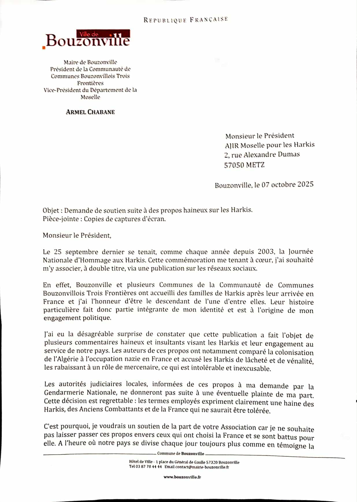 Pour revenir au budget, c’est au gouvernement qu’il appartient de le défendre devant le parlement. Le 21 octobre 2025 devant la même commission Madame la Ministre déléguée a déclaré s’inscrire dans le prolongement des engagements du Président de la République pour valoriser la mémoire des Harkis. Donnons-lui acte et attendons le 13 novembre 2025 pour la concrétisation de cet engagement.
